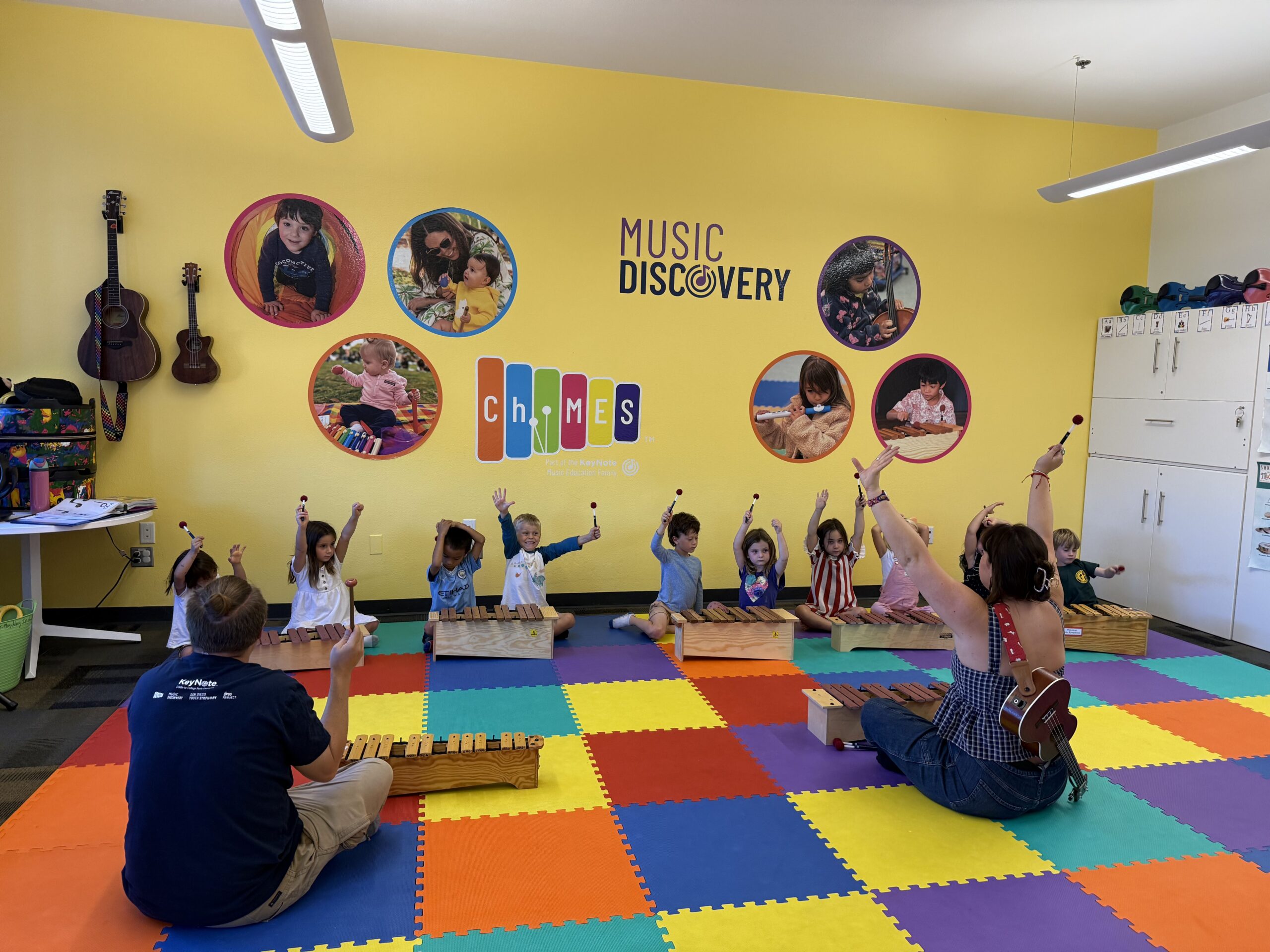 The Music Discovery program is specifically designed to help your child develop key musical, social, and developmental skills, all of which will help them succeed in school, social settings, as well as future musical ensemble participation.Â